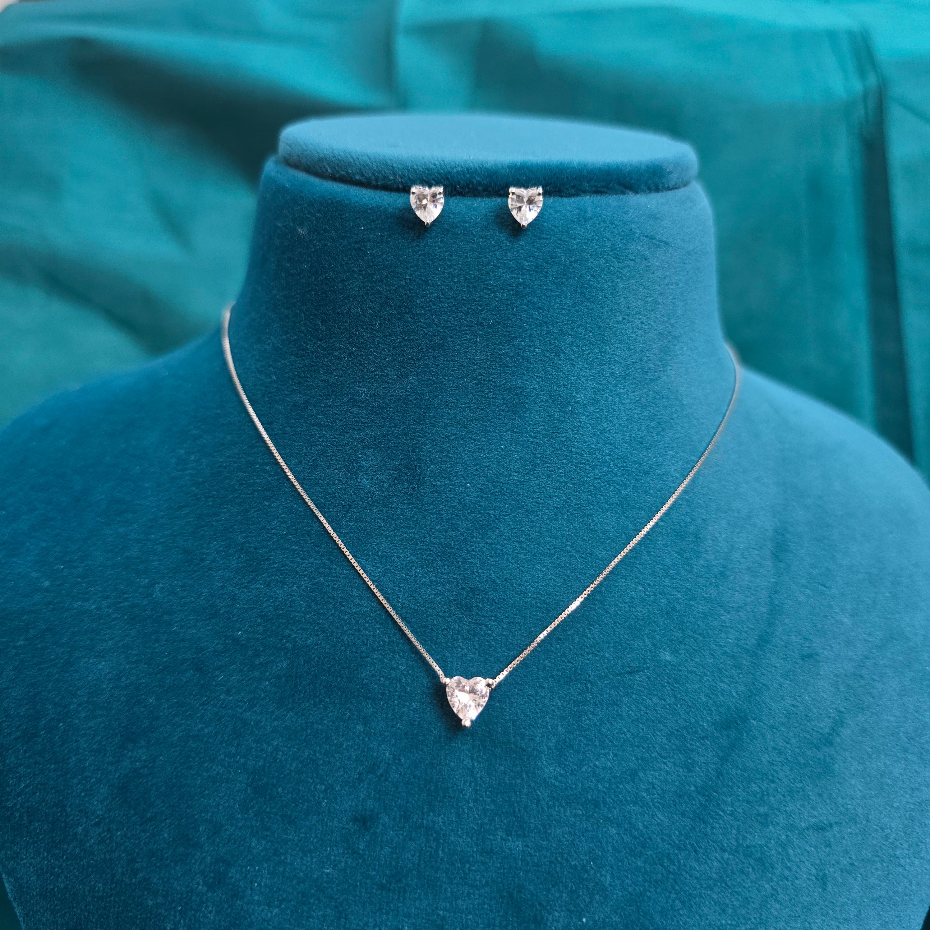 This cute and elegant set comes with a beautiful heart-shaped pendant necklace and matching stud earrings. The sparkling stones make the design look bright, simple, and classy—perfect for daily wear or gifting. Light in weight and easy to style, this set adds a sweet and charming touch to any look. A lovely choice for someone who loves minimal and pretty jewellery.