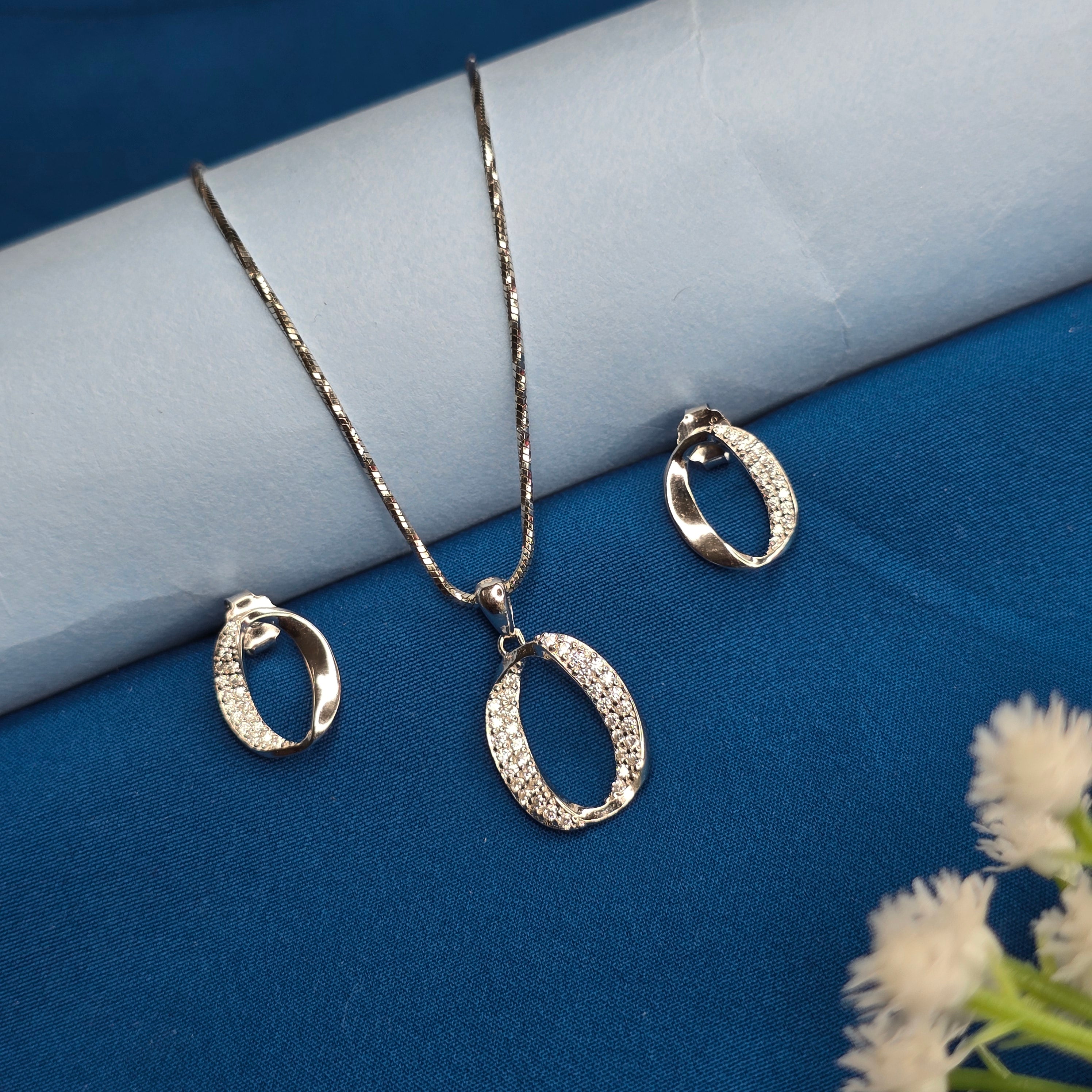 Chic, modern, and effortlessly stylish—this 925 Sterling Silver Modern Oval Sparkle Set features a sleek open-oval design beautifully accented with finely set cubic zirconia. The polished silver curve paired with the sparkling CZ detailing creates a perfect balance of simplicity and elegance. Lightweight and versatile, the pendant with matching earrings elevates both everyday outfits and special looks, making it an ideal choice for gifting or adding a touch of refined shimmer to your personal jewellery collection.