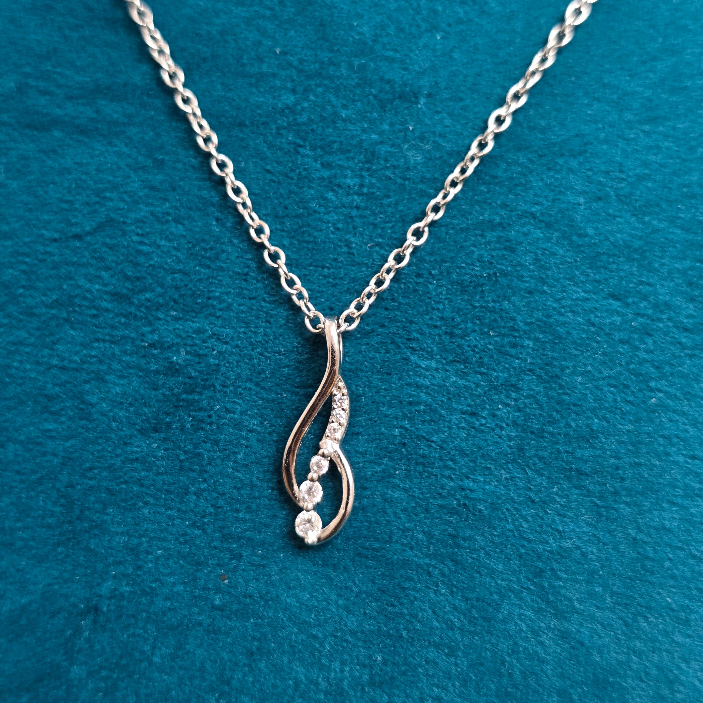 Add a touch of simple elegance to your look with this 925 Sterling Silver Twisted Flow Pendant Necklace. Designed with a smooth flowing shape and sparkling cubic zirconia stones, it gives a soft and graceful shine. Its lightweight and minimal style makes it perfect for daily wear, office looks, or gifting someone who loves clean and classy jewellery. A beautiful piece that matches any outfit with ease.