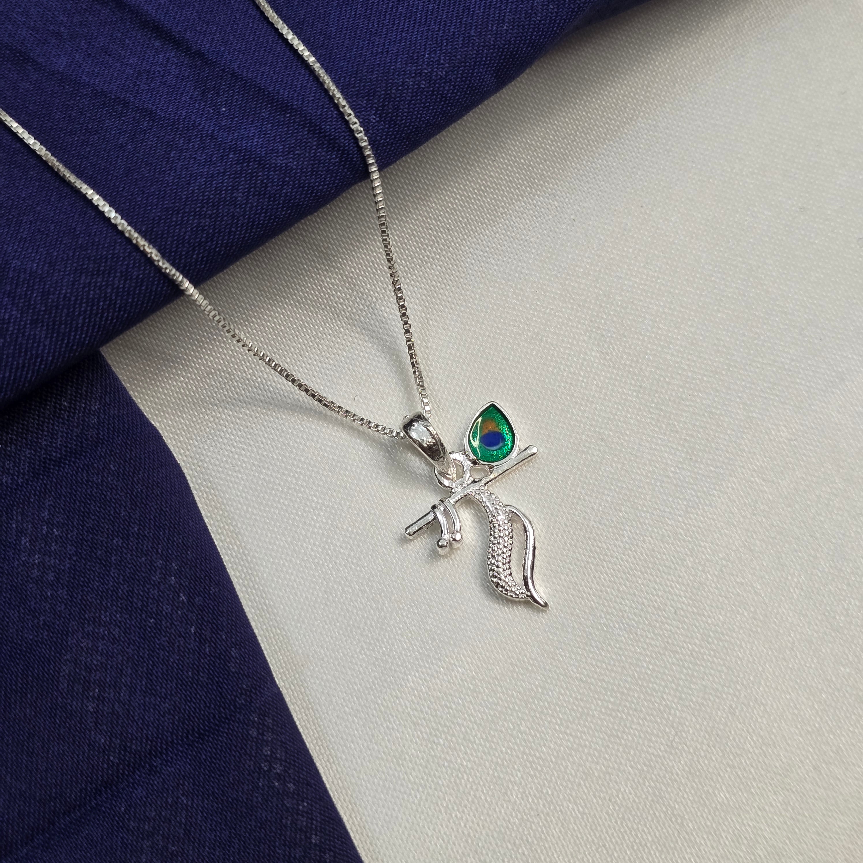 This 925 Sterling Silver Krishna Flute Pendant is inspired by the divine charm of Lord Krishna. Designed with a graceful flute and a beautiful peacock feather detail, it reflects peace, devotion, and positivity. The smooth silver finish with subtle detailing gives it an elegant and meaningful look. Lightweight and comfortable to wear, this pendant is perfect for daily wear, gifting, or spiritual occasions.